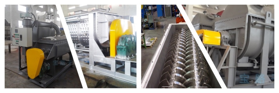 軸向區間內,溫度、濕度、混合度的均勻性,使得設備可用來加熱或融化,或進行一些固體物料反應。在復合肥及變性淀粉行業均已成功使用。